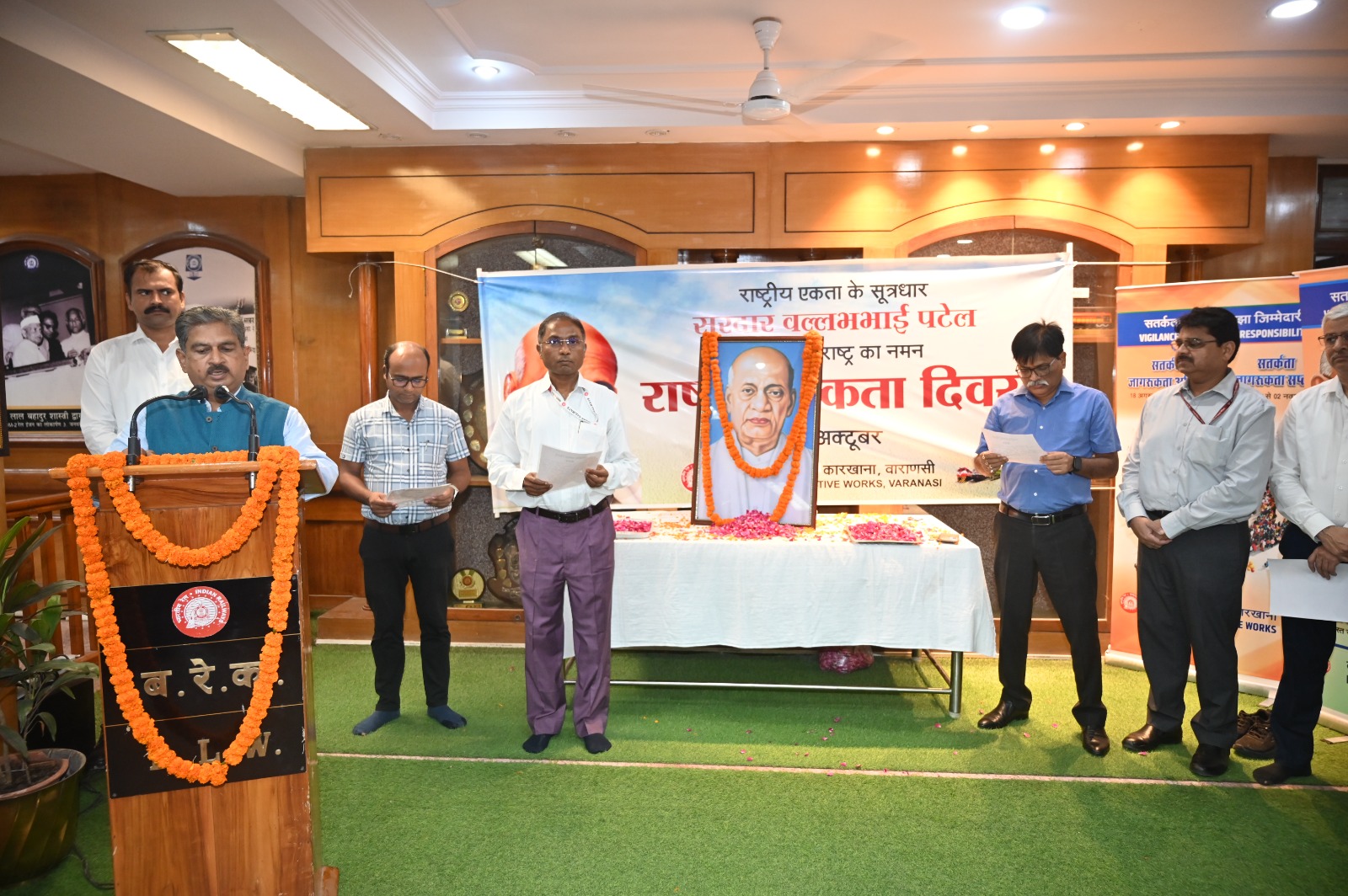 समारोह का आयोजन बरेका प्रशासन भवन स्थित स्वागती हाल में किया गया।कार्यक्रम में उपस्थित अधिकारियों एवं कर्मचारियों ने राष्ट्रभक्ति की भावना से ओत-प्रोत होकर सामूहिक शपथ ली तथा सरदार पटेल के आदर्शों को जीवन में आत्मसात करने का संकल्प दोहराया। शपथ समारोह के बाद महाप्रबंधक श्री सोमेश कुमार ने सरदार पटेल के चित्र पर माल्यार्पण कर श्रद्धांजलि अर्पित की। इसके उपरांत सभी अधिकारियों एवं कर्मचारियों ने भी पुष्पांजलि अर्पित कर अपनी श्रद्धा व्यक्त की। इस अवसर पर प्रमुख मुख्य विद्युत इंजीनियर श्री सुशील कुमार श्रीवास्तव, प्रमुख मुख्य यांत्रिक इंजीनियर श्री विवेक शील, प्रमुख मुख्य सामग्री प्रबंधक श्री आलोक अग्रवाल, प्रधान वित्त सलाहकार श्री मुक्तेश मित्तल, प्रमुख मुख्य कार्मिक अधिकारी श्री जनार्दन सिंह सहित बड़ी संख्या में वरिष्ठ अधिकारी एवं कर्मचारी उपस्थित रहे। इसी क्रम में राष्ट्रीय एकता दिवस पर शपथ समारोह के बाद बरेका महाप्रबंधक श्री सोमेश कुमार ने बरेका कर्मशाला के विभिन्न शॉपों का निरीक्षण किया। निरीक्षण के दौरान महाप्रबंधक ने सबसे पहले लोको फ्रेम शॉप का जायजा लिया और उत्पादन प्रक्रिया व गुणवत्ता सुधार को लेकर आवश्यक दिशा-निर्देश दिए। इसके बाद उन्होंने लोको असेंबली शॉप, पाइप शॉप, ट्रक मशीन शॉप सहित अन्य शॉपों का विस्तृत निरीक्षण किया। निरीक्षण के दौरान प्रमुख मुख्य यांत्रिक इंजीनियर श्री विवेक शील, प्रमुख मुख्य सामग्री प्रबंधक श्री आलोक अग्रवाल, उप महाप्रबंधक श्री अनुज कटियार एवं अन्य वरिष्ठ अधिकारी उपस्थित रहे।