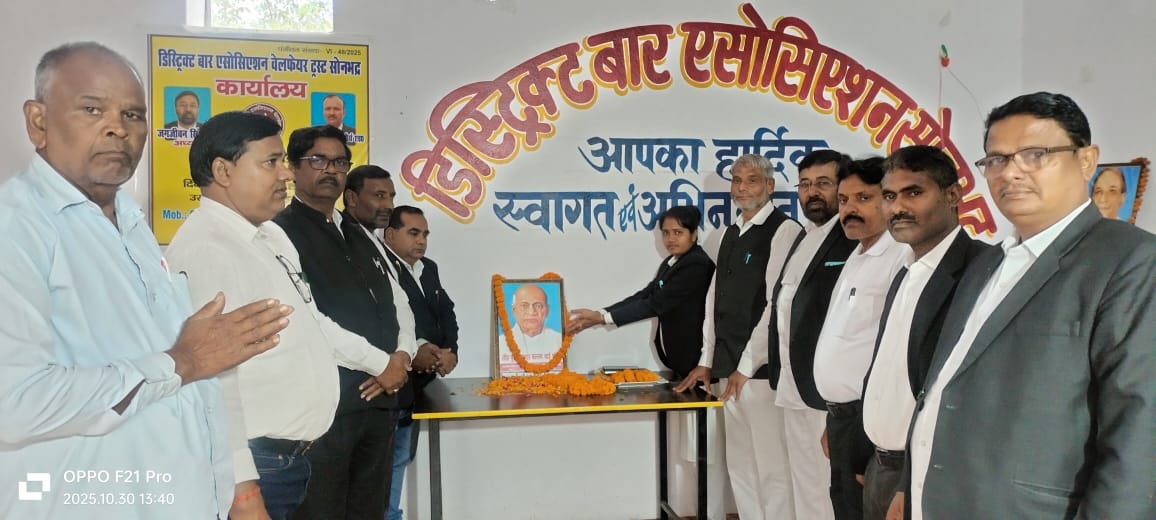 सोनभद्र, 30 अक्टूबर 2025 । डिस्ट्रिक्ट बार एसोसिएशन सोनभद्र के सभागार में लौह पुरुष सरदार वल्लभभाई पटेल की 150वीं जयंती की पूर्व संध्या पर एक कार्यक्रम का आयोजन किया गया। कार्यक्रम की अध्यक्षता अध्यक्ष एडवोकेट जगजीवन सिंह ने की।अध्यक्ष जगजीवन सिंह ने कहा कि गृहमंत्री के रूप में सरदार पटेल की पहली प्राथमिकता देसी रियासतों को भारतीय संघ में मिलाना थी।